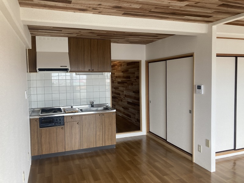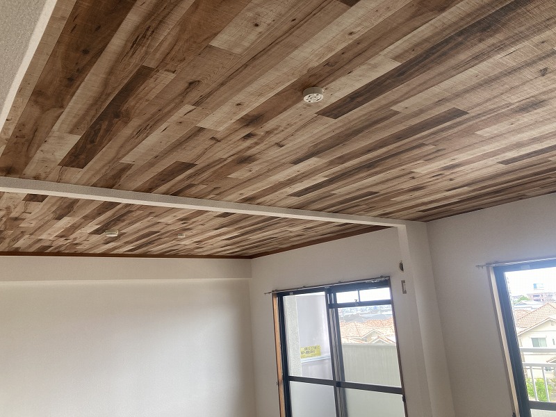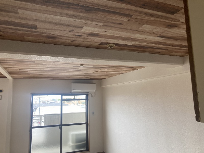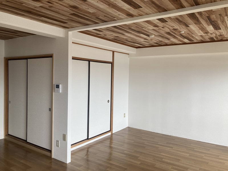 この度は、リノベーション工事をご依頼いただき、ありがとうございました!広くなったリビングに、天井のアクセントクロスで、写真映えすることを狙いました!