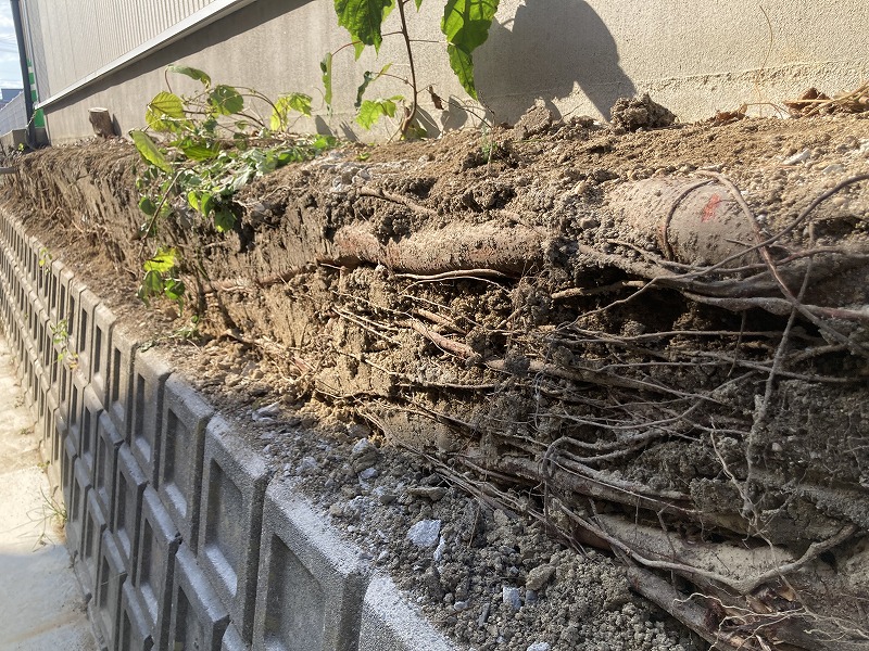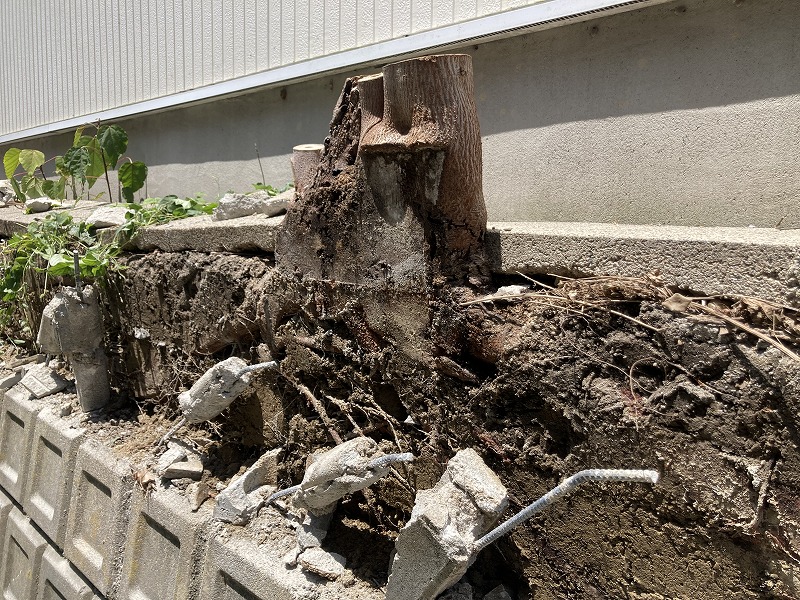 この度は、外構工事をご依頼いただき、ありがとうございました!原因の根っこは取り除きましたので、これで倒壊の危険はありません!