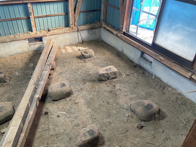 床を解体して、断熱材を敷き詰めました。