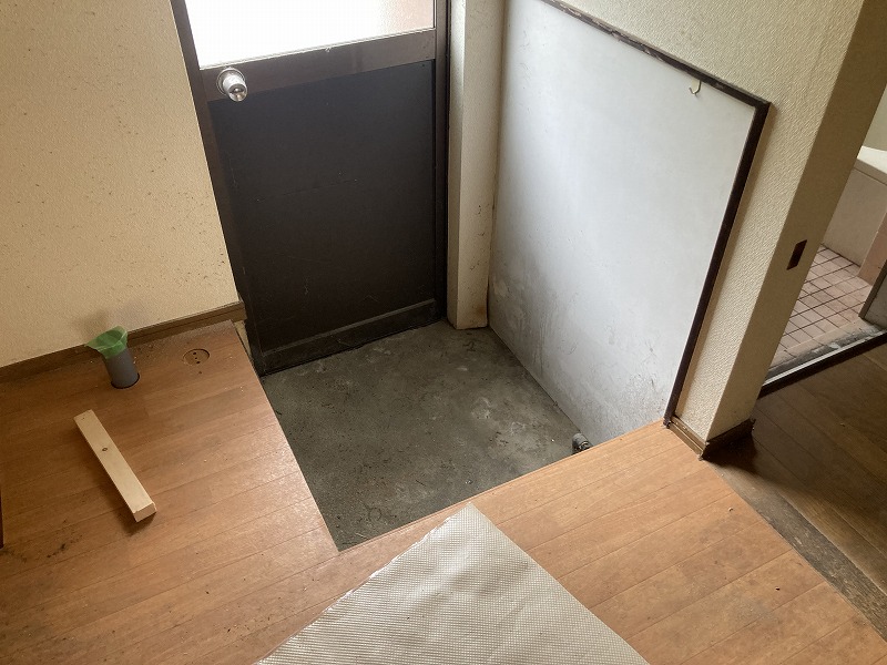 勝手口を床上げして、洗濯機置き場を作りました。